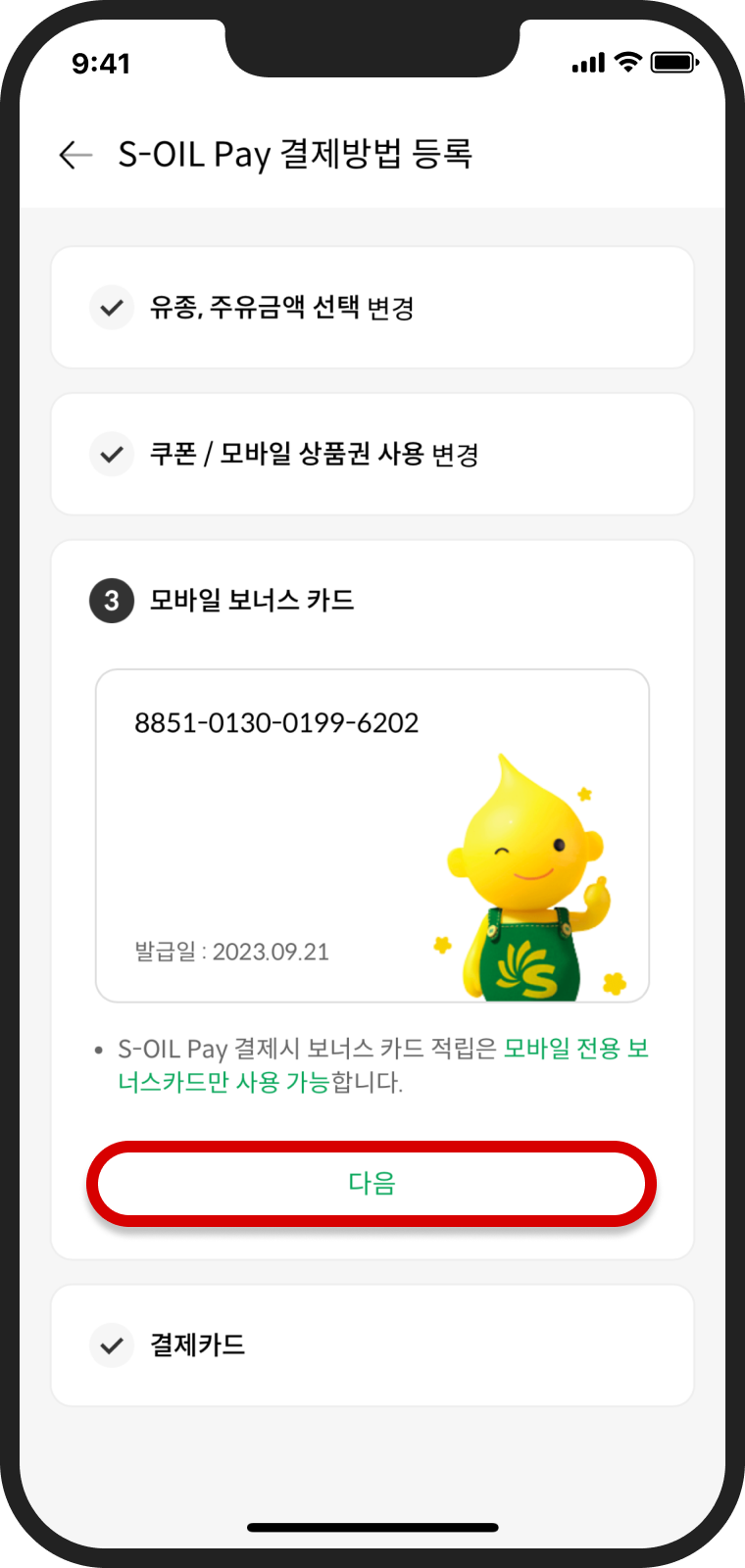 'S-OIL Pay 결제방법 등록'